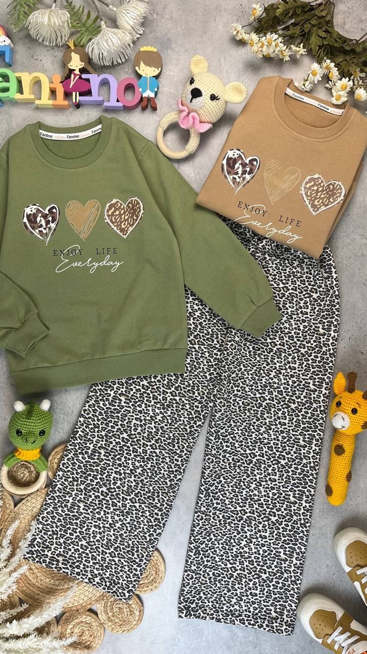 ست دخترانه بلوز شلوار طرح سه قلب
