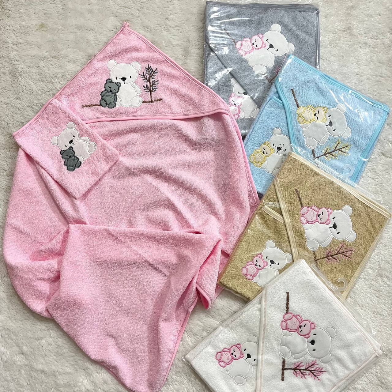 ست حوله و لیف حمام نوزادی گلدوزی شده