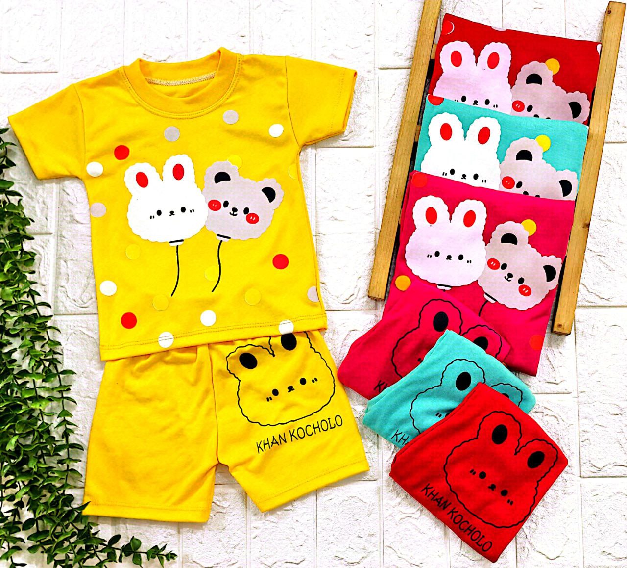 ست بلوز شلوارک طرح خرس و بادکنک