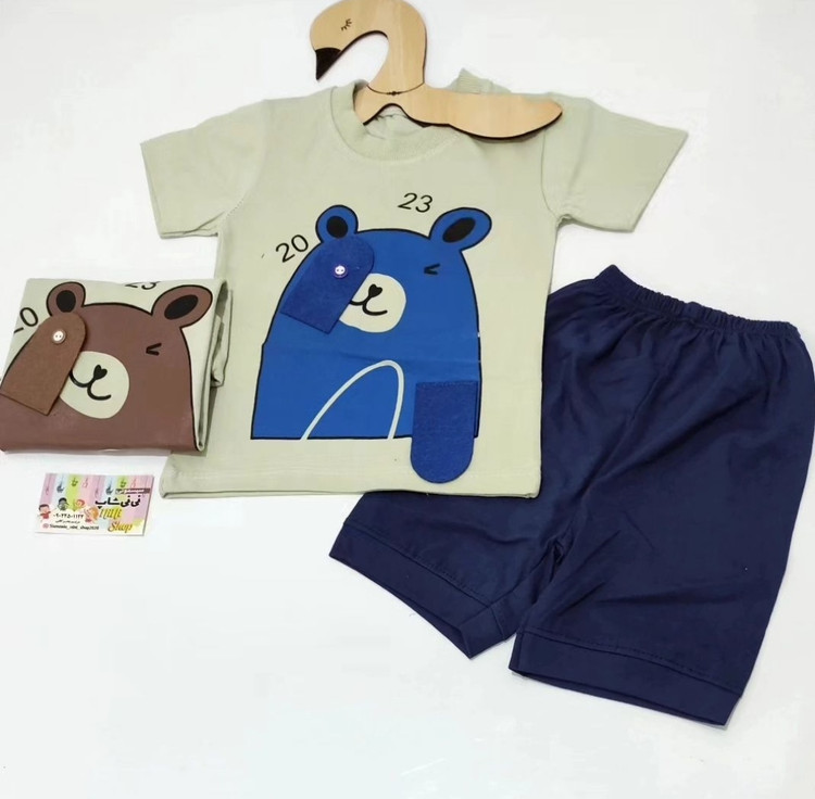 ست تیشرت شلوارک طرح خرس نمدی