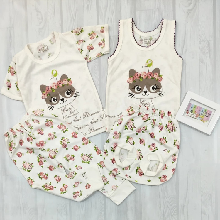 سرویس باز شامل بلوز آستین کوتاه ،رکابی، شلوار بلند ،شورت عینکی