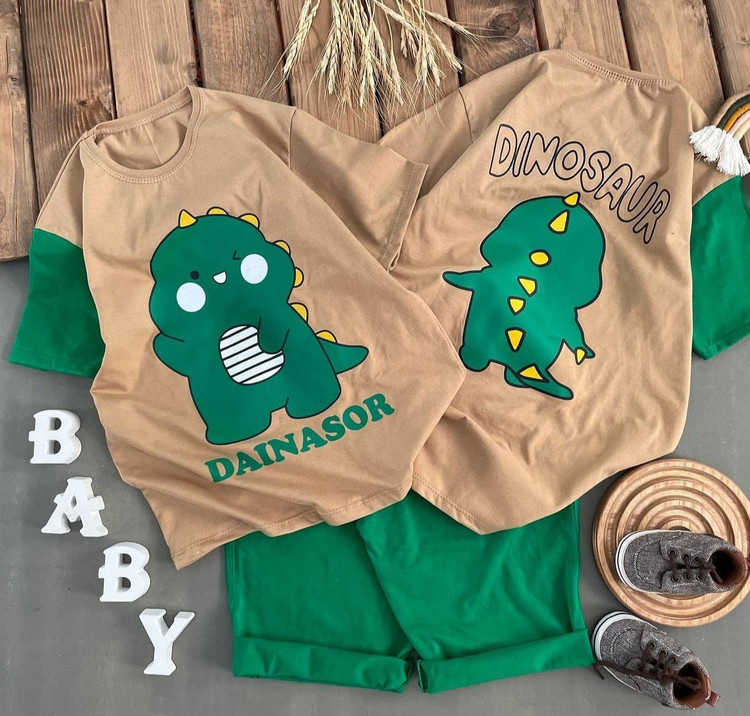 نام کالا: تیشرت شلوارک طرح دایناسور~(مناسب خواهر برادری)