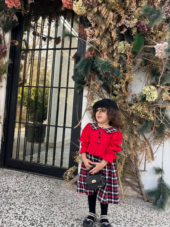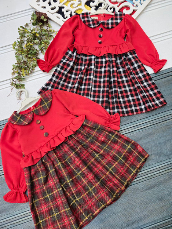 نام کالا:🤩سارافون دخترانه چهارخونه ~طرح یقه ب ب