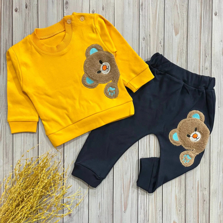 نام کالا:بلوز شلوار اسپرت طرح خرس زرد گلدوزی