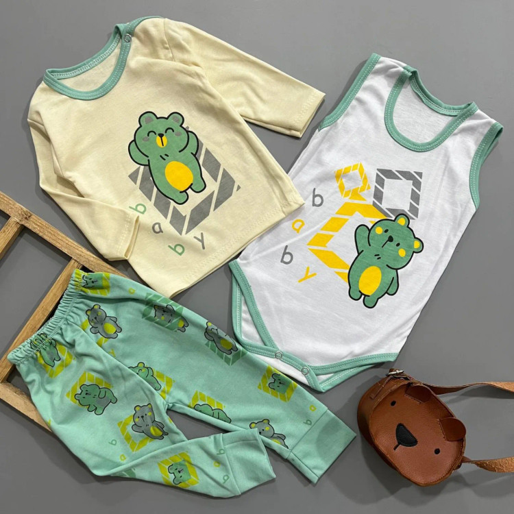 نام کالا: نوزادی اسپرت~طرح خرس سبز شامل:بلوز آستین بلند+ زیر دکمه+ شلوار ~~~~~~~~~~~~~~~~~~~~ جنس پنبه پلیستر اعلا کیفیت بالا تمام چاپ ~~~~~~~~~~~~~~~~~~~~~~~~~~~~~~~~~~~~~~~~~~~~~~~~~~~~~~~~~~~~~~ سایز : ۱_۲_۳ (مناسب صفر تا ۹ماه) سایز ۱: قدبادی۳۷ پهنا۲۲ قدبلوز۳۰ قدشلوار۳۷ سایز ۲: قدبادی۴۱ پهنا۲۴ قدبلوز۳۲ قدشلوار۴۰ سایز۳: قدبادی۴۶ پهنا۲۶ قدبلوز۳۵ قدشلوار۴۲ ٫~~~~~~~~~~~~~~~~~~~~~~~~~~~~~~~~ رنگ بندی: تک رنگ زیبا (مطابق با عکس) ~~~~~~~~~~~~~~~~~~~~~~~~~~~~~~~~ شماره تماس : ۰۹۳۹۹۳۰۳۸۶۳_ ۰۹۰۲۲۵۰۱۱۲۲ ساعت کاری و ساعت پاسخگویی ۱۰صبح الی۱۲شب نحوه فقط ازطریق و واتساپ ارسال و تحویل ۵تا۷روزکاری