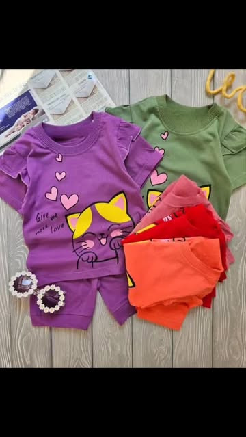 نام کالا:تیشرت شلوارک دخترانه~طرح گربه Give me