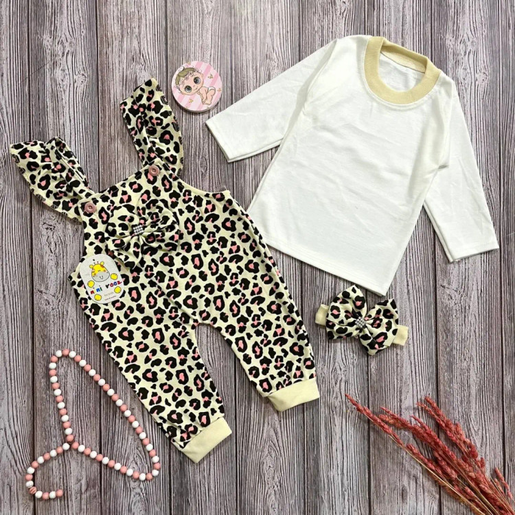 نام کالا: دوتیکه پیش بندی دخترانه~طرح پلنگی همراه با هدبند
