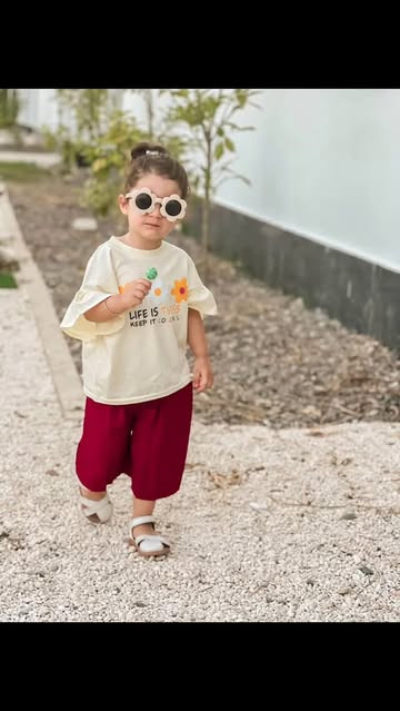 نام کالا:ست زیبای دخترانه طرح فلور سر آستین چین و شلوارک پیلی دارد